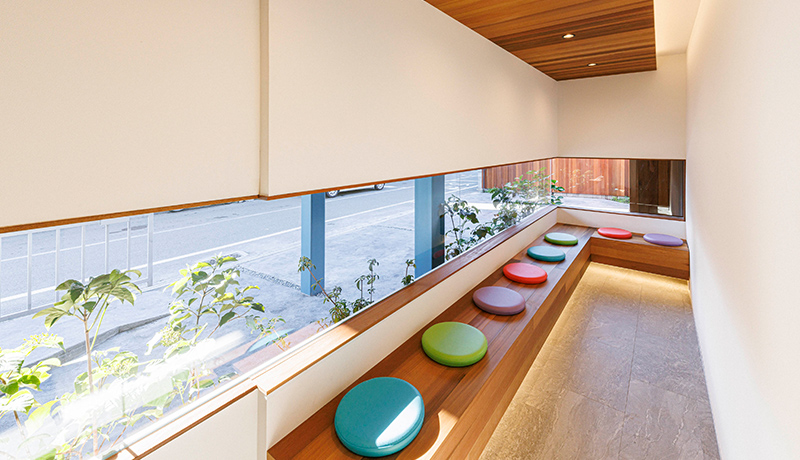 あたたかな自然光が優しく差し込む待合室や、車椅子の患者様でもご利用いただきやすいバリアフリー設計、