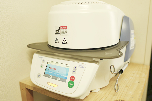 歯の形に成形したセラミックをファーネスで焼き上げることで患者様にピッタリ合った被せ物に仕上がります。