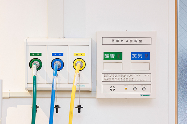 この装置により、ボンベの交換無く安全に酸素、笑気、空気の供給が可能になりました。