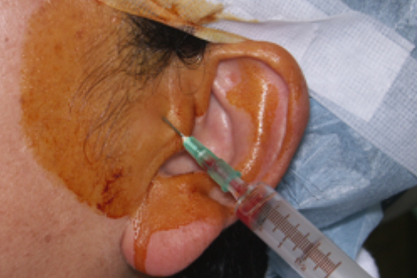 広義の外科療法に含まれる関節穿刺およびパンピング療法です。これは早期のクローズドロックを呈する顎関節症に効果的で、時に劇的なアンロック効果をもたらします。