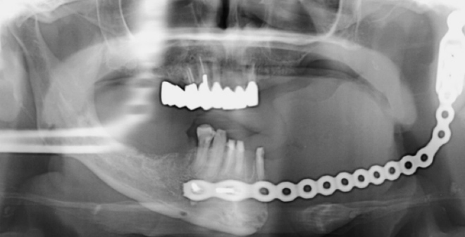 術後レントゲン像(顎関節を含め摘出再建した)